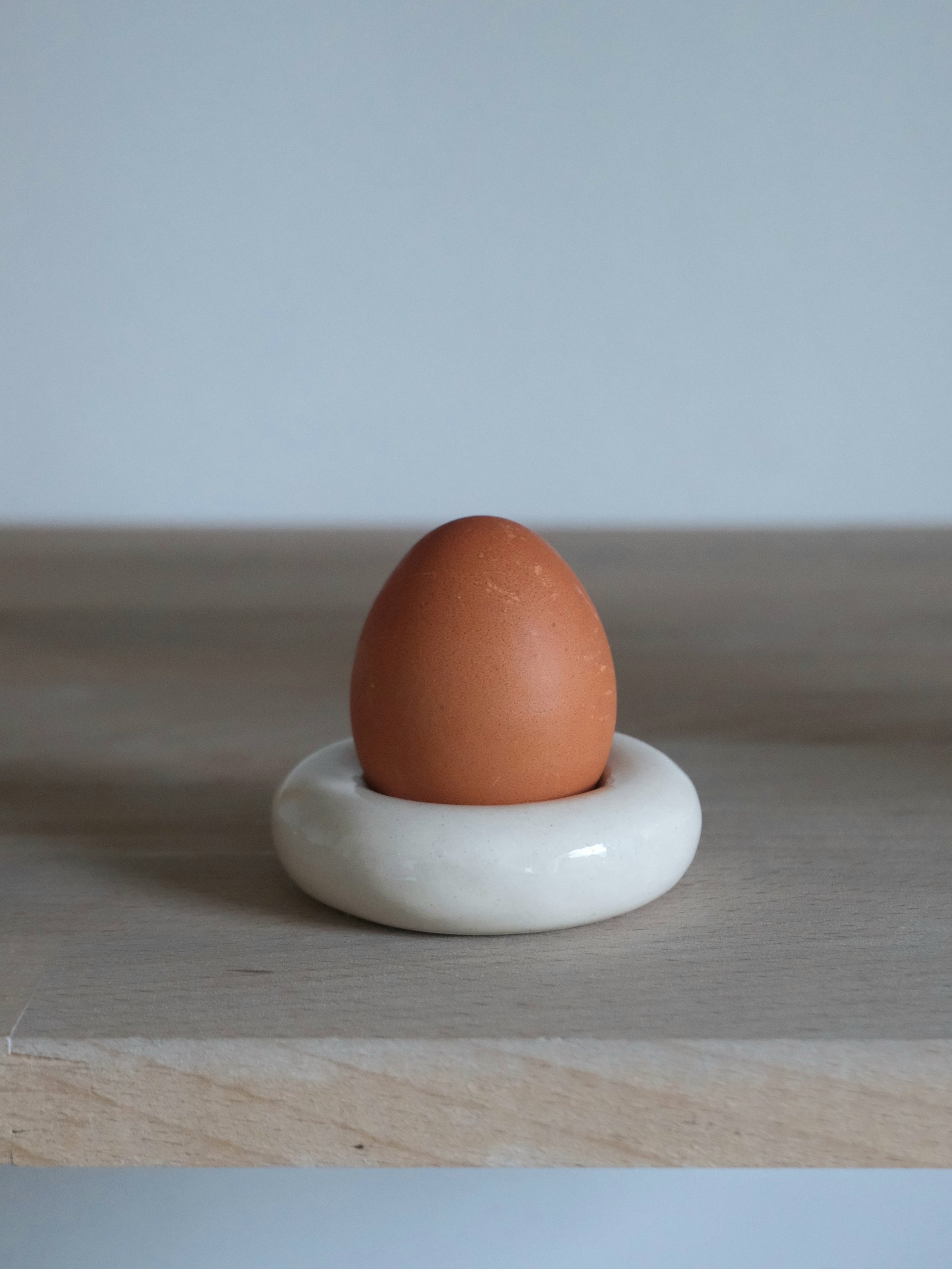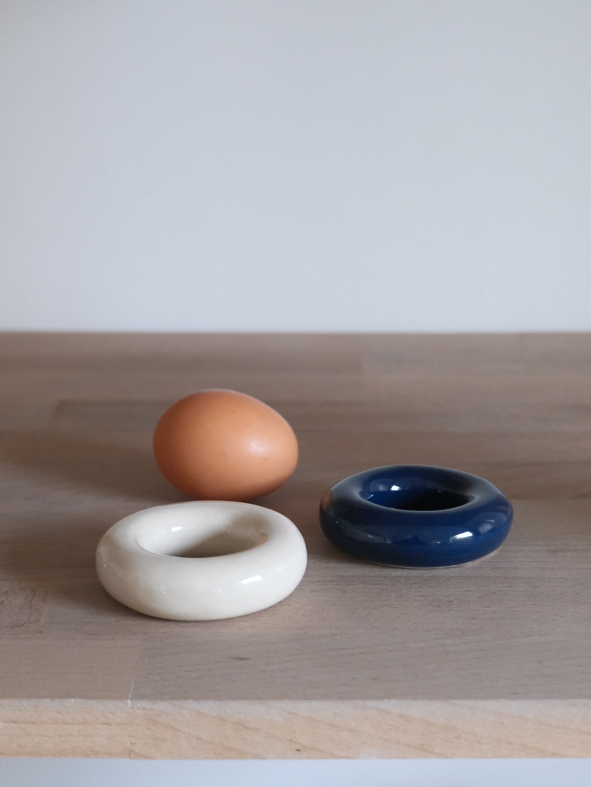 Coquetier minimaliste en forme de bouée, disponible en deux coloris.